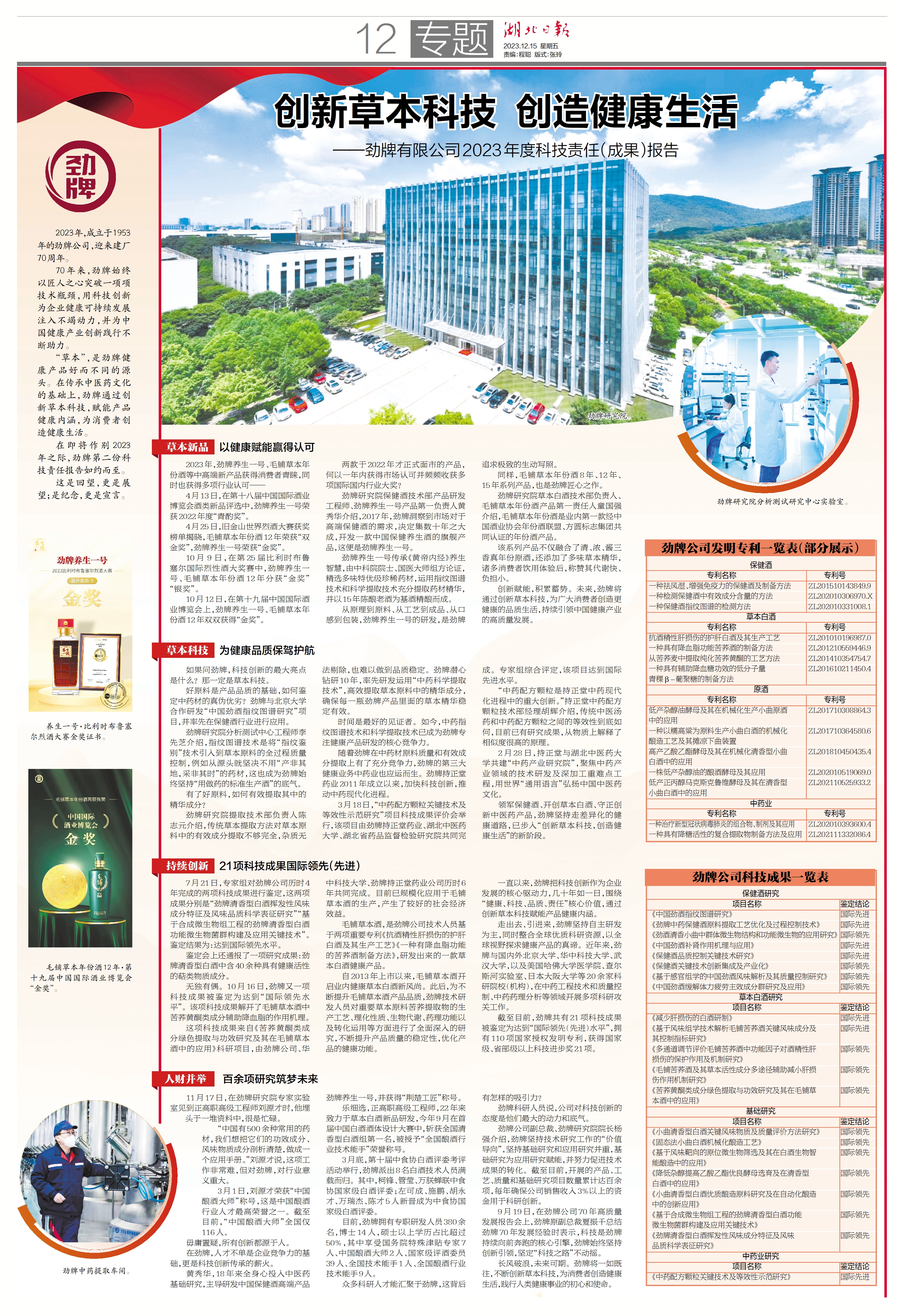 70 年來 , 勁牌始終以匠人之心突破一項項技術瓶頸 , 用科技創新為企業健康可持續發展注入不竭動力 , 并為中國健康產業創新踐行不斷助力。“草本”,是勁牌健康產品好而不同的源頭。在傳承中醫藥文化的基礎上,勁牌通過創新草本科技,賦能產品健康內涵,為消費者創造健康生活。